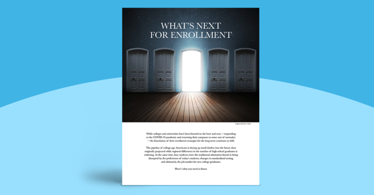 Changing demographics, new student preferences, and long-term job prospects will all disrupt the traditional admissions funnel in the next few years. Read about how these changes will impact your enrollment—and how to meet the changing needs of future students to set your institution apart. Access the report now.