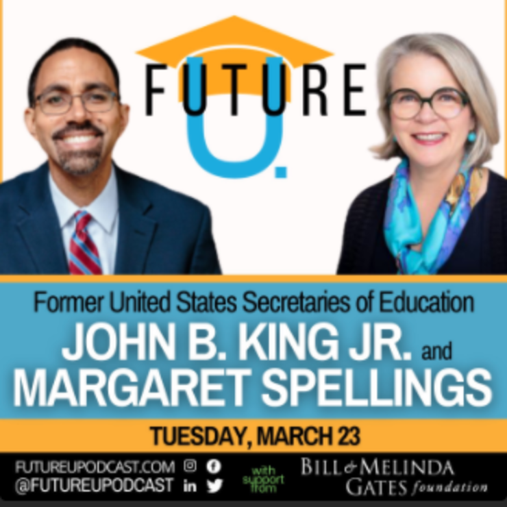 In the newest FutureU podcast, we interview John King, an Education Secretary in the Obama Administration, and Margaret Spellings, who held the role during part of the Bush Administration. Spellings talks about what she described as "the pros" President Biden installed at the Education Department; King weighs in on the agenda the department should pursue over the next four years; and in a rare moment of disagreement by the two secretaries, they discuss debt forgiveness.